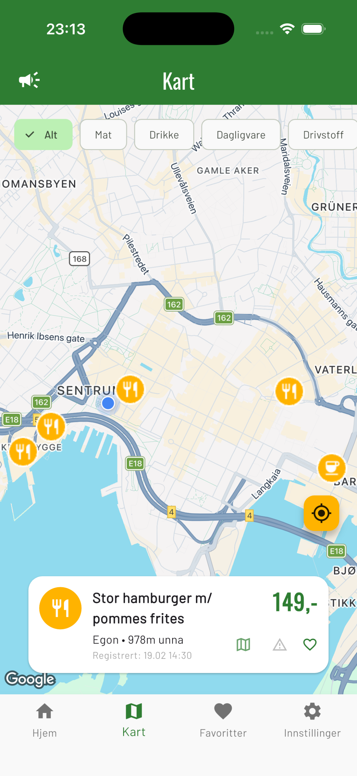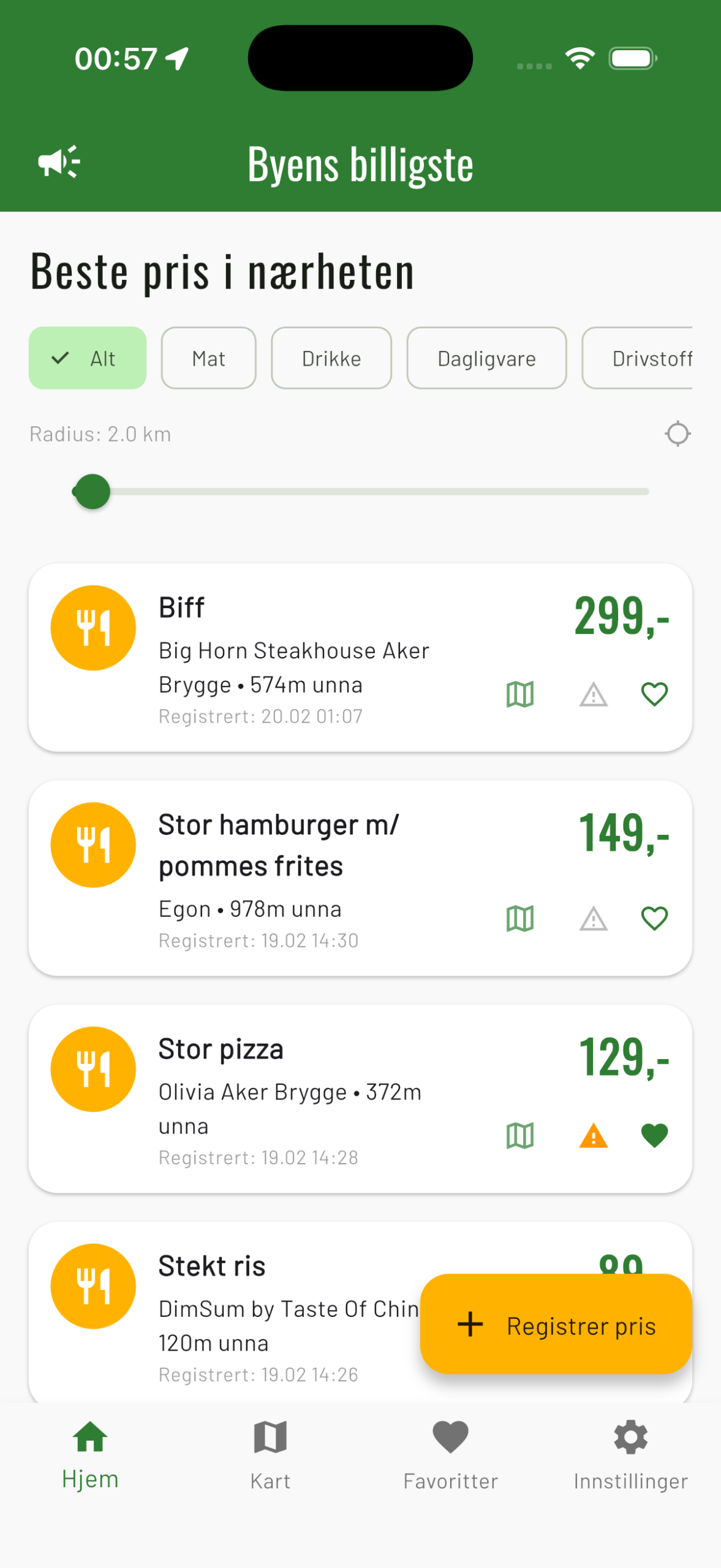 Hold kartet oppdatert: Ser du en pris som ikke lenger stemmer? Markér den som ugyldig med ett trykk, så holder vi informasjonen pålitelig for alle.